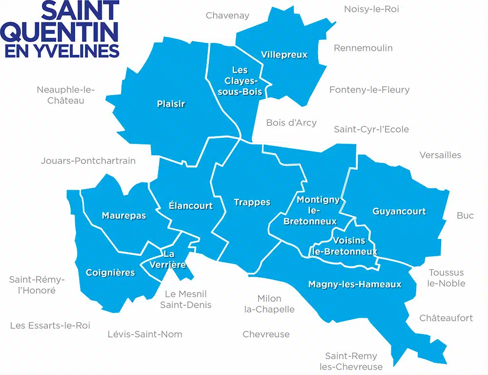 Montigny-le-Bretonneux, la ville voisine qui commence de l’autre côté de la rue où se trouve le campus voit en sein sein le siège :