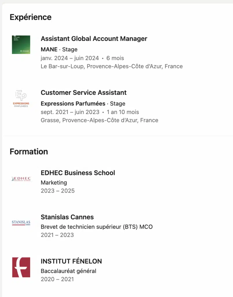 - Customer Service Assistant chez Expressions Parfumées (1 an 10 mois en alternance)