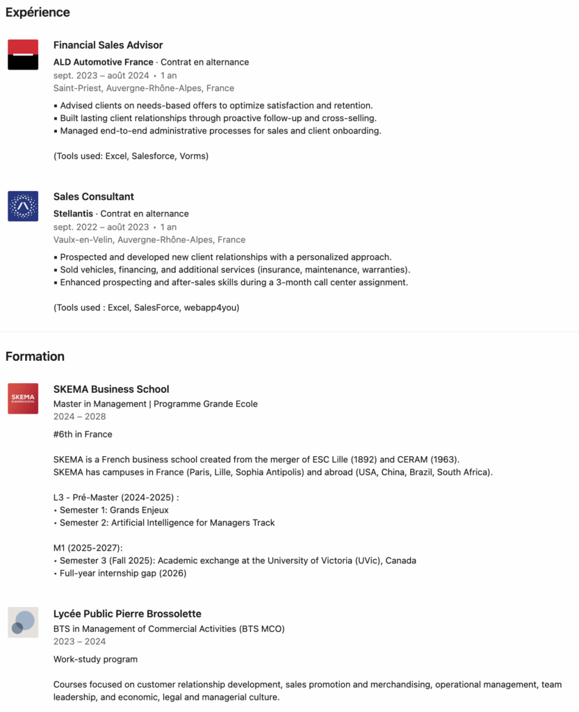 - 2023-2025 : EDHEC Business School – Spécialisation Marketing